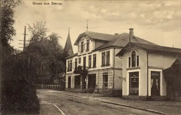 Ak Satrup in Angeln, Straßenpartie