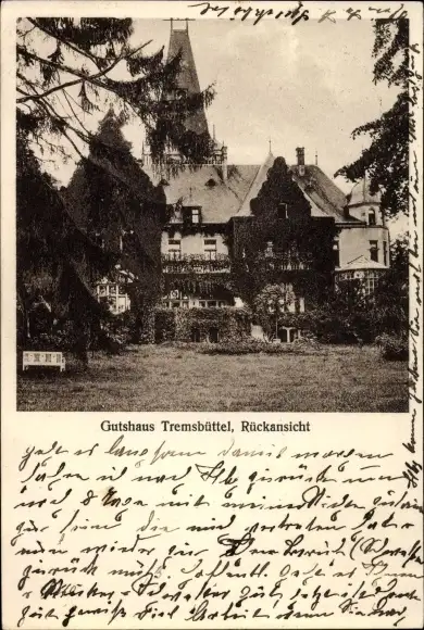 Ak Sattenfelde Tremsbüttel in Schleswig Holstein, Rückansicht, Garten