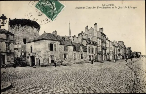 Ak Saumur Maine et Loire, Ancienne Tour des Fortifications, Quai de Limoges