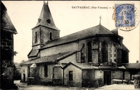 Ak Sauvagnac Haute Vienne, Kirche, Außenansicht