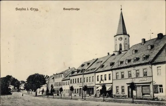 Ak Sayda im Erzgebirge, Hauptstraße mit Kirche