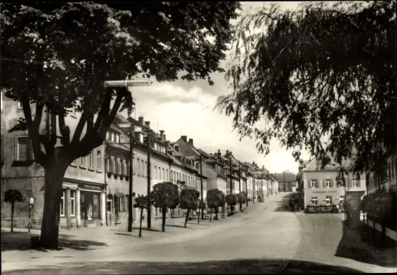 Ak Sayda im Erzgebirge, Straßenpartie mit Restaurant Goldener Löwe