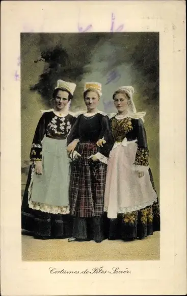 Ak Scaer Fnistere, Drei Frauen in bretonischen Trachten