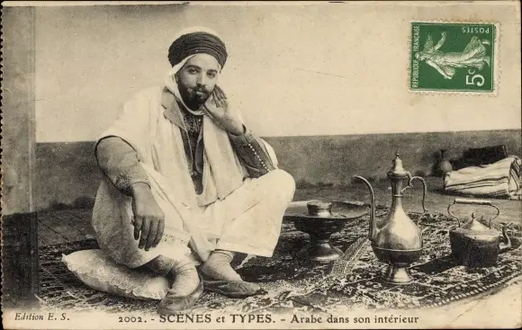 Ak Scenes et Types, Arabe dans son interieur, Mann mit Turban, Maghreb