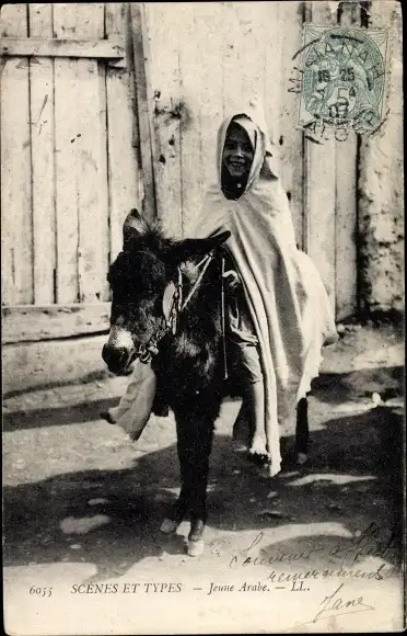 Ak Scenes et Types, Jeune Araber, Junge auf einem Esel, Maghreb