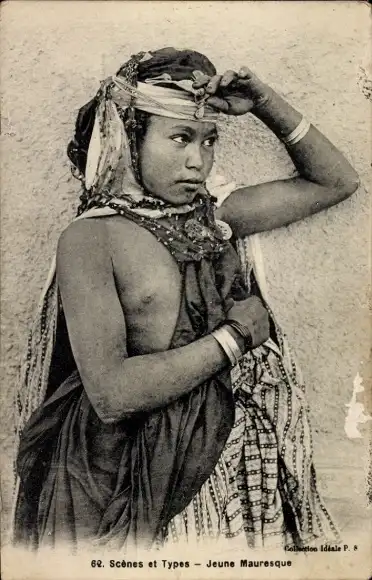 Ak Scenes et Types, Jeune Mauresque, Araberin, Portrait, Busen, Maghreb