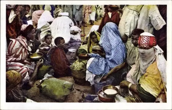 Ak Scenes et Types, Marchand de soupe, Maghreb, verschleierte Frau, Händler