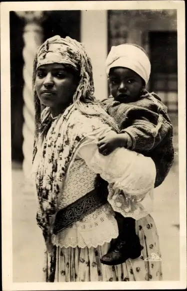Ak Scenes et Types, Mauresque et son enfant, Araberin, Maghreb