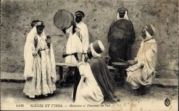 Ak Scenes et Types, Musiciens et Danseuse du Sud, Maghreb