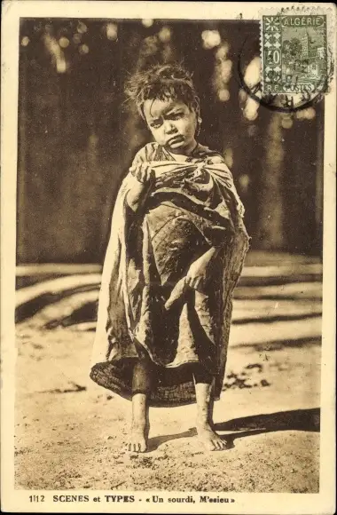 Ak Scenes et Types, Un sourdi, M'esieu, arabisches Kind, bettelnd