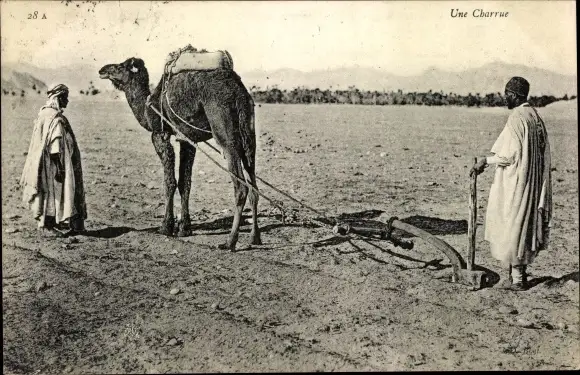 Ak Scènes et Types, Une Charrue, Kamel mit Pflug, Maghreb
