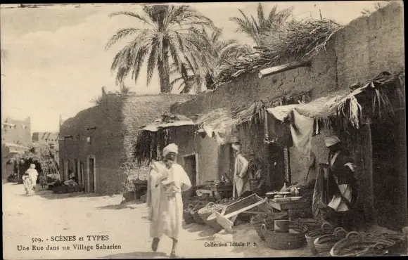 Ak Scènes et Types, Une Rue dans un Village Saharien