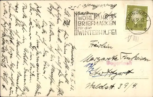Zustand, siehe Scan, gelaufen, 1932 - ca 9 cm X 14 cm