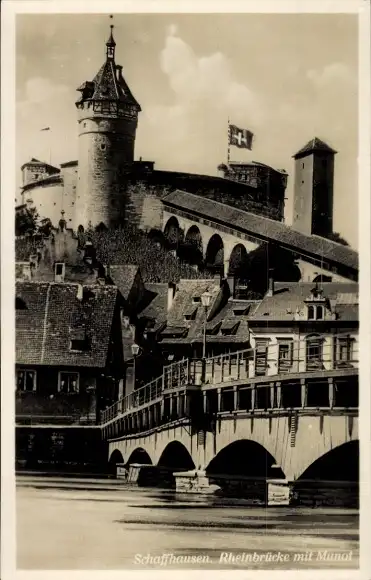 Ak Schaffhausen Schweiz, Rheinbrücke mit Munot