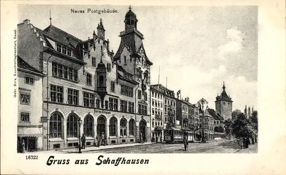 Ak Schaffhausen Stadt Schweiz, Neues Postgebäude, Straßenbahn