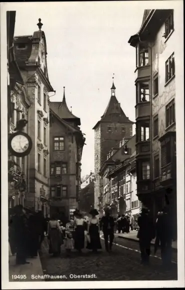 Ak Schaffhausen Stadt Schweiz, Oberstadt, Straßenpartie in der Stadt
