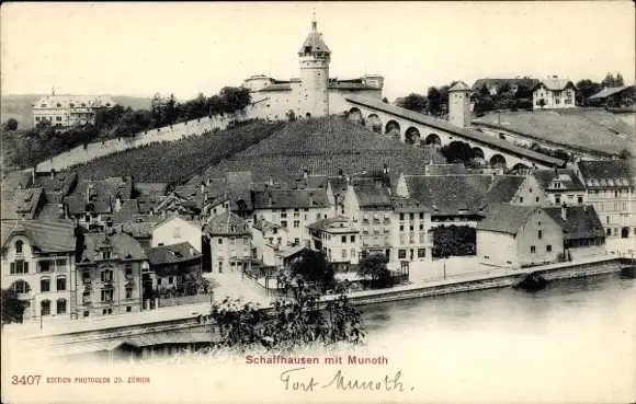 Ak Schaffhausen am Rhein Schweiz, Blick auf Burg Munot, Weinberge, Altstadt