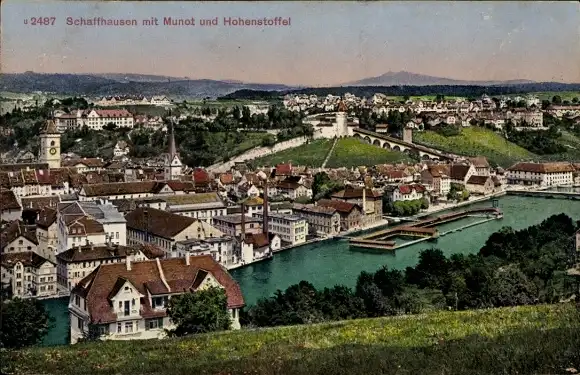 Ak Schaffhausen am Rhein Schweiz, Panorama von Munot, Hohenstoffel, Rheinfluss