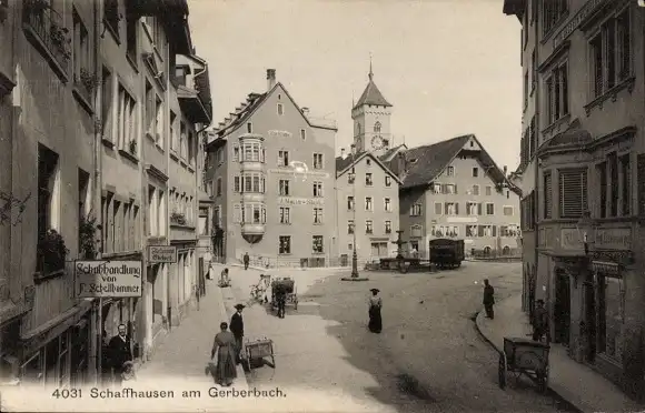 Ak Schaffhausen am Rhein Schweiz, Partie am Gerberbach, Schuhhandlung
