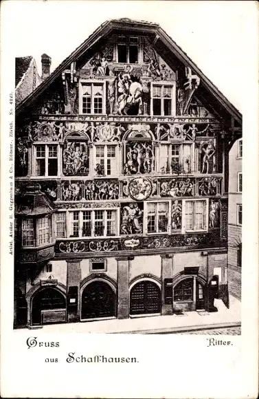 Ak Schaffhausen am Rhein Schweiz, Ritter, verzierte Hausfassade