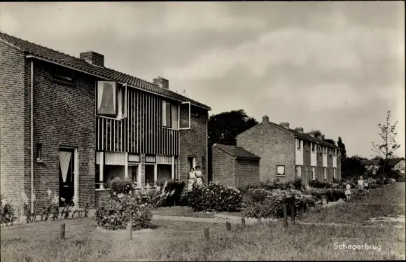 Ak Schagerbrug Nordholland Niederlande, Wohnhäuser, Bewohner