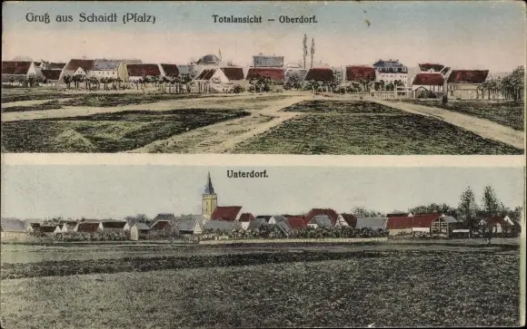 Ak Schaidt Wörth am Rhein in der Pfalz, Oberdorf, Unterdorf