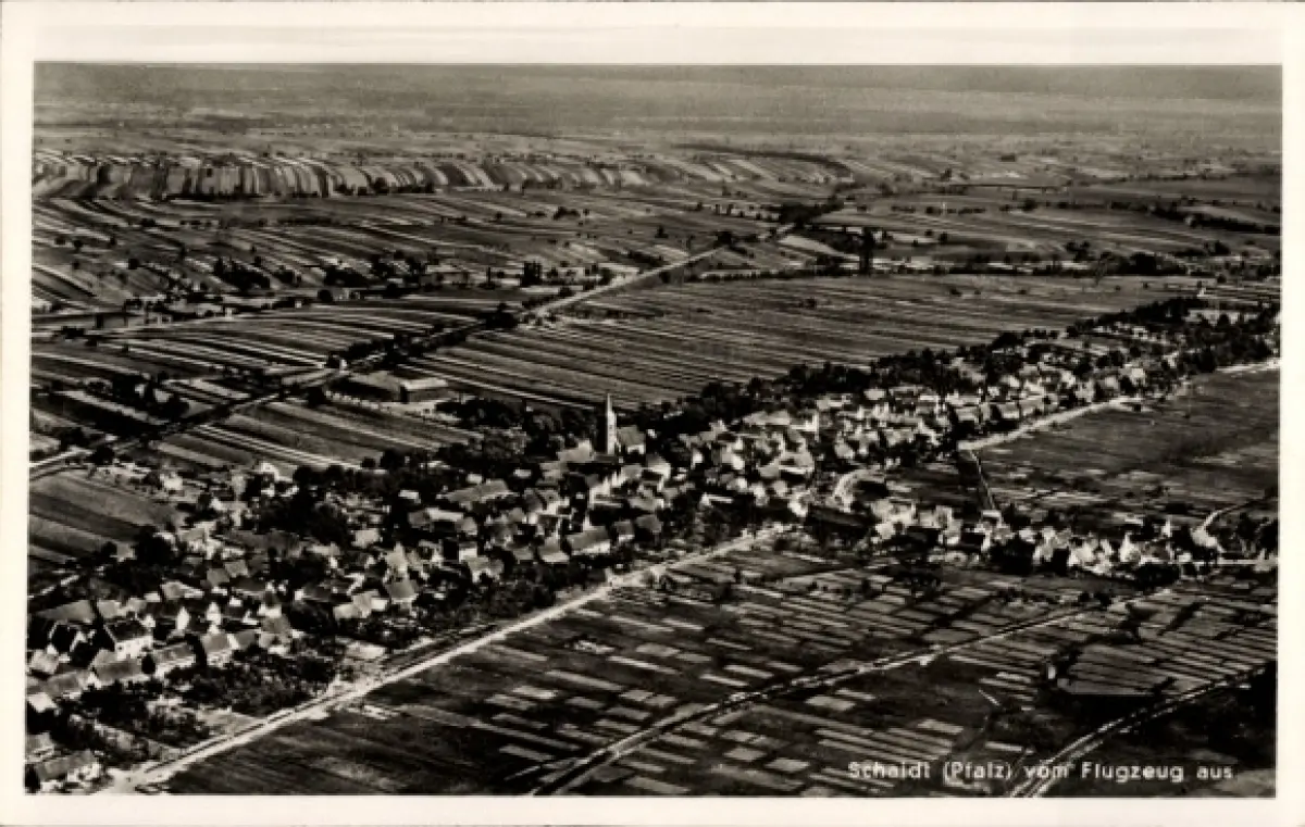 Ak Schaidt in der Pfalz Wörth am Rhein, Luftaufnahme