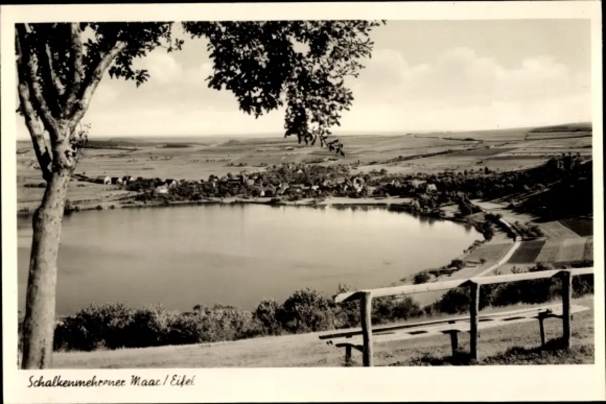Ak Schalkenmehren in der Eifel, Maar, Ort, Fernsicht