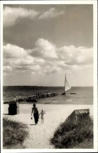 Ak Scharbeutz in Ostholstein, Bootssteg, Segelboot