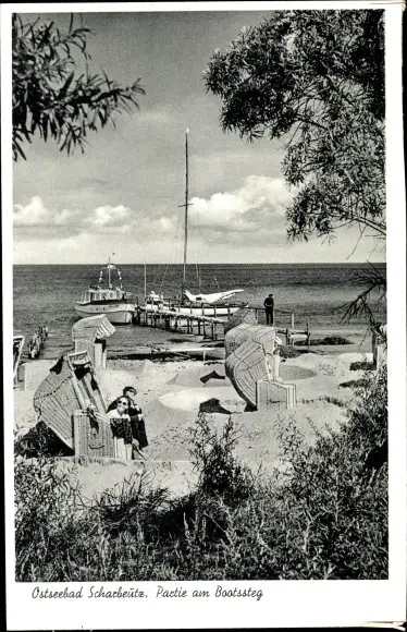 Ak Scharbeutz in Ostholstein, Bootssteg, Strandpartie