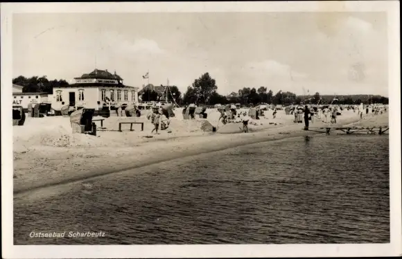 Ak Scharbeutz in Ostholstein, Hotel Wilhelminenbad, Strand