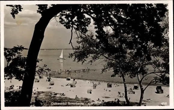 Ak Scharbeutz in Ostholstein, Ostseebad, Strandleben, Segelboot, Strandkörbe