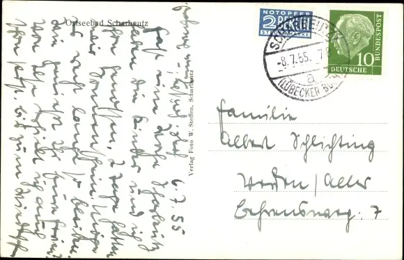 Zustand, siehe Scan, gelaufen, 1955 - ca 9 cm X 14 cm