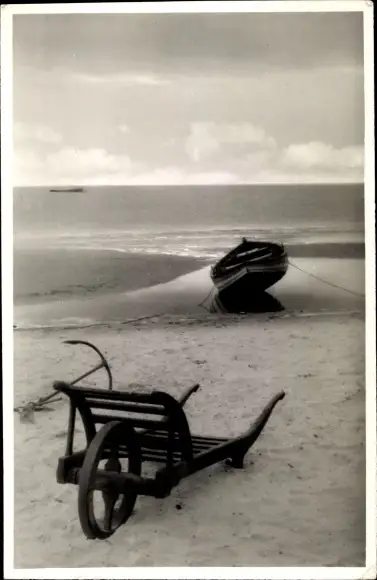 Ak Scharbeutz in Ostholstein, Strand, Boot, Schubkarren