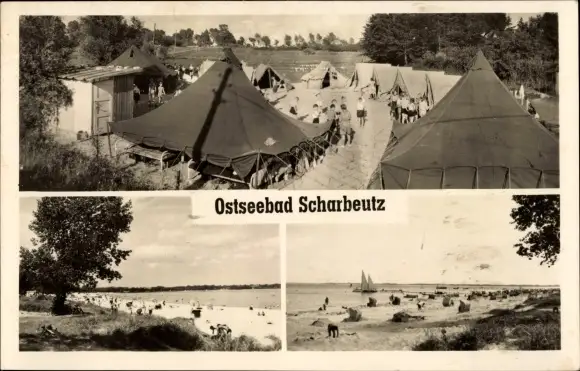 Ak Scharbeutz in Ostholstein, Zeltstadt, Strandpartie