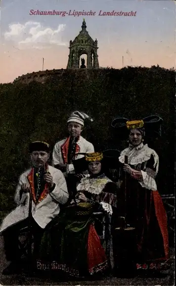 Ak Schaumburg Rinteln in Niedersachsen, Familie in Landestracht