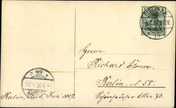 Zustand, siehe Scan, gelaufen, 1907 - ca 9 cm X 14 cm