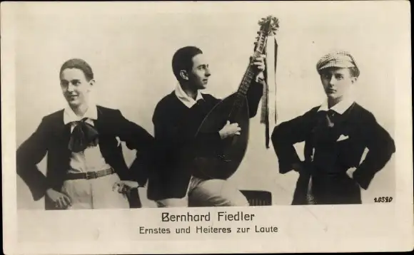 Ak Schauspieler Bernhard Fiedler, Portrait, Laute, Autogramm
