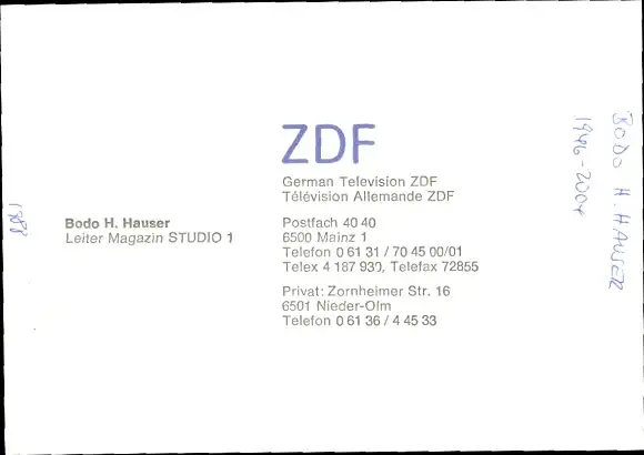 Ak Schauspieler Bodo H. Hauser, Portrait, Autogramm