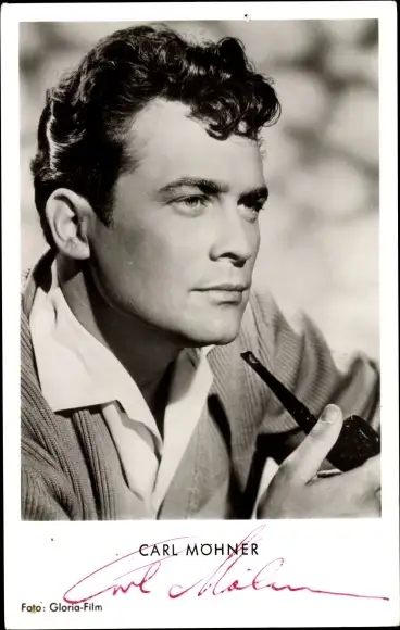 Ak Schauspieler Carl Möhner, Portrait mit Pfeife, Autogramm