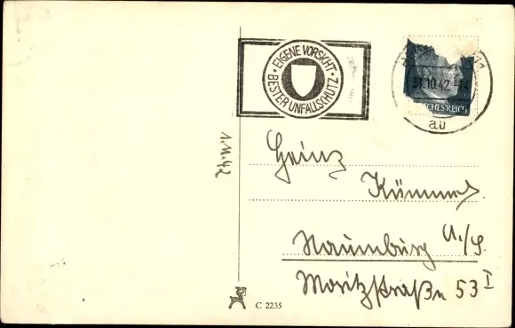 Zustand, siehe Scan, gelaufen, 1942 - ca 9 cm X 14 cm