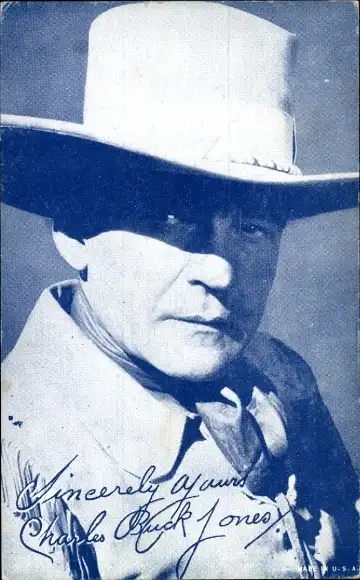 Ak Schauspieler Charles Buck Jones, Portrait als Cowboy, Autogramm