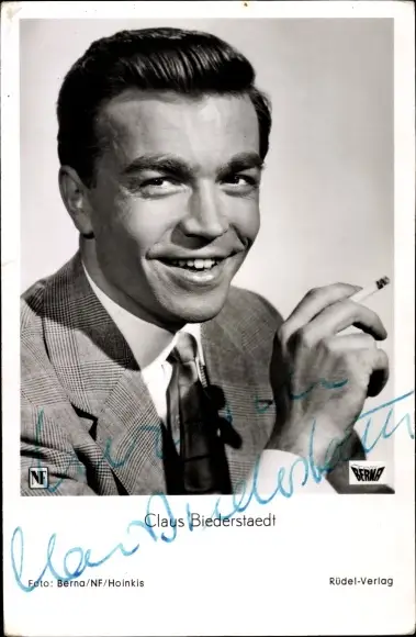 Ak Schauspieler Claus Biederstaedt, Portrait, Autogramm, Zigarette
