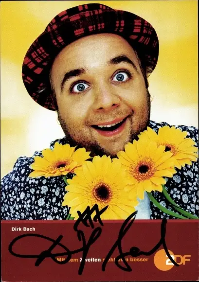 Ak Schauspieler Dirk Bach, Portrait, Autogramm, Sonnenblumen, ZDF