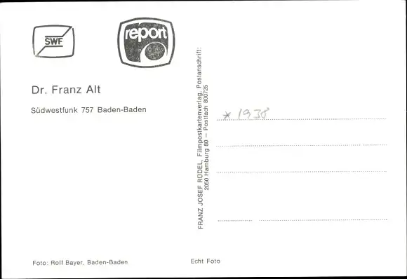 Ak Schauspieler Dr. Fanz Alt, Portrait, SWF, Autogramm