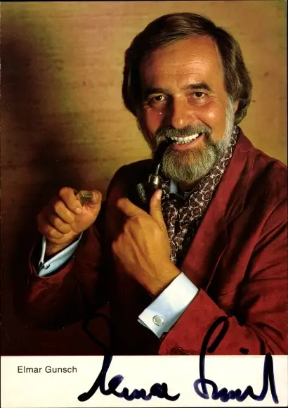 Ak Schauspieler Elmar Gunsch, Portrait, Autogramm, Pfeife, Feuerzeug
