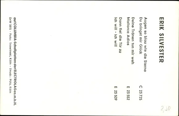 Ak Schauspieler Erik Silvester, Portrait, Autogramm, Sänger