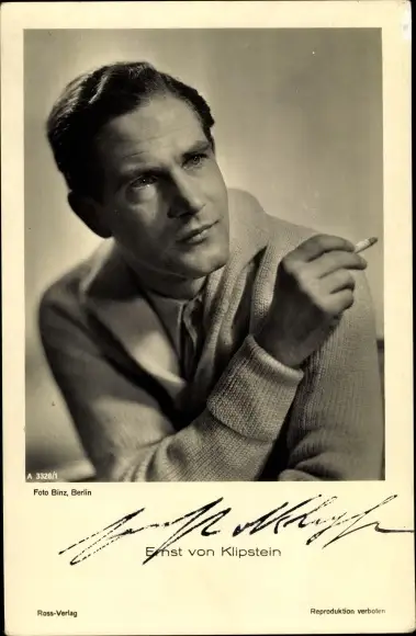 Ak Schauspieler Ernst von Klipstein, Portrait, Zigarette, Autogramm