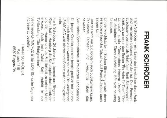 Ak Schauspieler Frank Schröder, Portrait, Autogramm