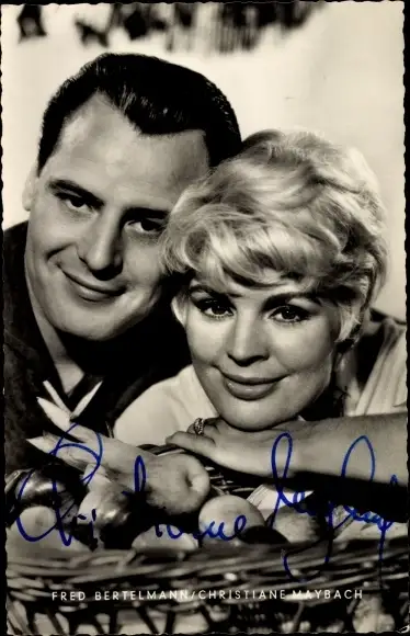 Ak Schauspieler Fred Bertelmann und Christiane Maybach, Portrait, Autogramm